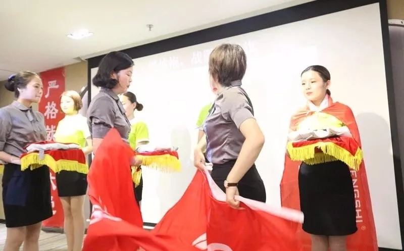 緊接著,臺上的家人們進(jìn)行了莊嚴(yán)的入職宣誓!戰(zhàn)旗披肩,臺上的家人們猶如一個個戰(zhàn)士一般奮勇當(dāng)先,英姿煥發(fā),宣誓堅定而有力!從此刻起,就成為盛世人了,我們致力把職業(yè)當(dāng)事業(yè),把使命當(dāng)生命,把信念當(dāng)信仰,把企業(yè)文化深深注入我們的骨子里,我們的血液里,并為我們共同的夢想而終身奮斗!
