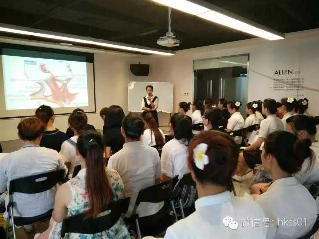 盛世黃玉蘭總監為艾倫美容的寶貝們講解項目優勢及專業知識