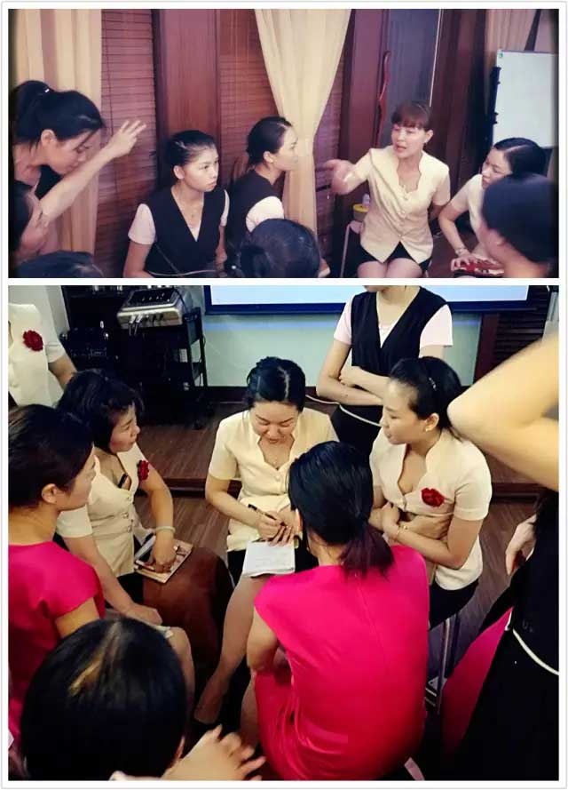 盛世精英們?yōu)閷氊悅儌魇谛袠I(yè)經(jīng)驗,講解頸部項目優(yōu)勢。大家都非常認真聽講,吸取經(jīng)驗知識。