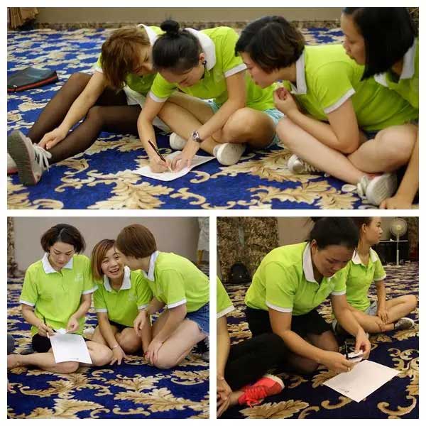 一場精神洗禮這場精神洗禮主要由盛世華美學院院長和魅力無限的曹教官共同主持,一個"捕魚"的小游戲,雖然簡單有趣,但是卻讓盛世的小伙伴們感悟頗深。在第一場捕魚活動結束后,小伙伴們都沒有達到理想的目標.但是她們經過認真思考總結,感悟出了一些深刻的道理,明白了信任的重要性,團隊合作雙贏的重要性,當他們再次“出海捕魚”的時候,他們都達到了理想的目標,最終實現了團隊間雙贏。
